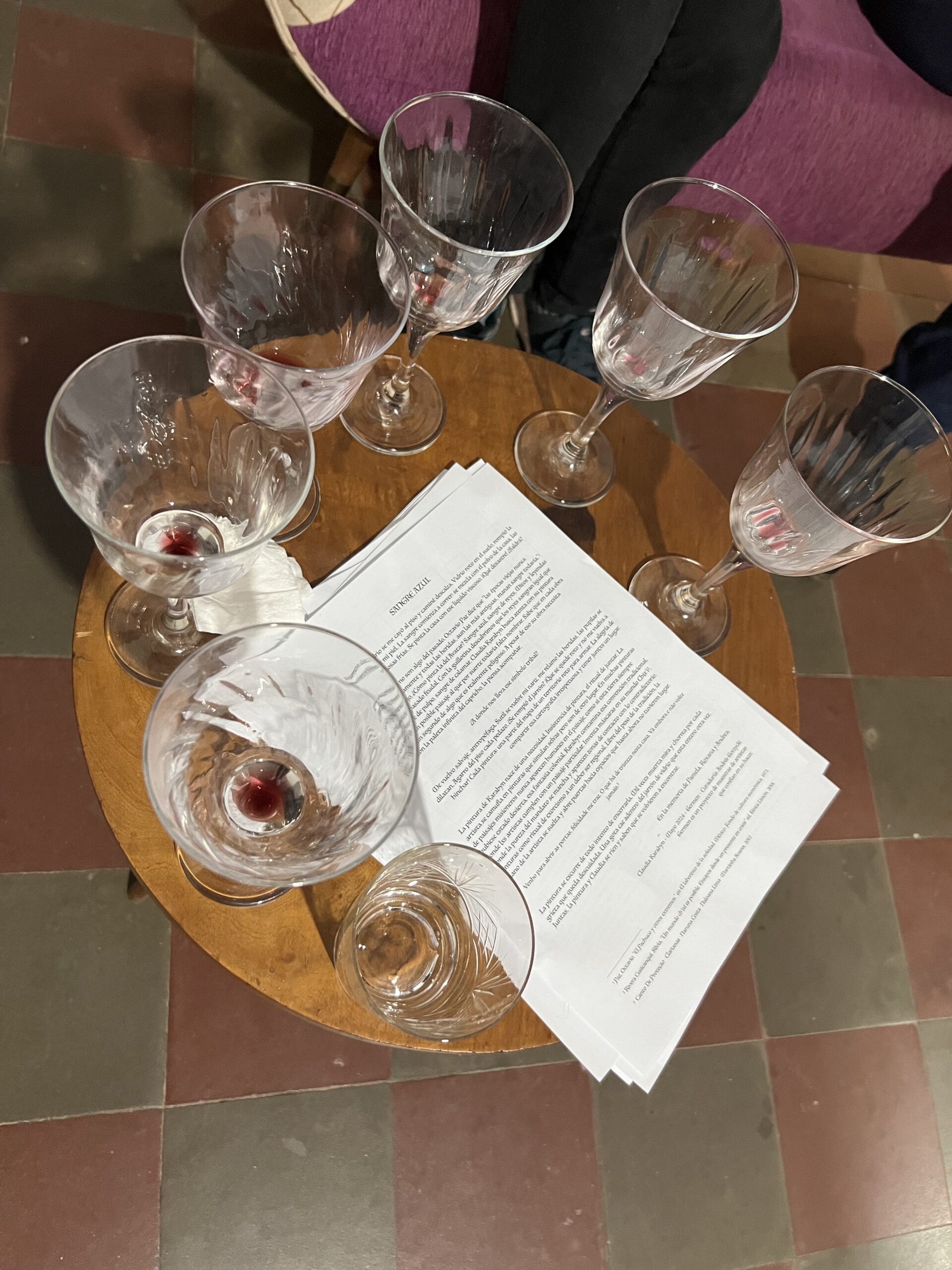 Las heridas coloniales no son algo del pasado. Octavio Paz dice que “las épocas viejas nunca desaparecen completamente y todas las heridas, aun las más antiguas, manan sangre todavía.” Si la sangre pinta rojo, ¿Cómo pinta la del Avatar? Sangre azul, sangre de reyes. Mitos y leyendas de un enigmático pasado feudal. Con la guillotina descubrimos que los reyes sangran igual que lxs demás. Sangre de pulpo, sangre de calamar. Claudia Karabyn busca atenta con su pintura los colores de un posible paisaje al que por suerte todavía falta nombrar. Sabe que en cada obra de arte hay un segundo de algo que es realmente peligroso. A pesar de eso su obra necesita pintar y con la paleta infinita del capricho, la piensa acompañar.