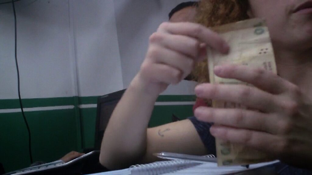 Ya nos agotaron las narrativas heroicas y románticas de un paraíso prometido, de una tierra sin mal con el slogan de las siete maravillas del mundo. Solo obtuvimos heridas históricas, violencias estatales y colonizaciones internas. En ”La desaparición”, Liv Schulman produce un doble señalamiento (al cambiar una y otra vez mil dólares en las tres ciudades fronterizas hasta que el dinero desaparece): devela el sinsentido del sistema monetario entre países vecinos como si fuera un truco barato de magia y a la vez, invierte la lógica económica especulativa que ha marcado históricamente el territorio fronterizo, imaginando tan solo por un momento, que el dinero no existe.