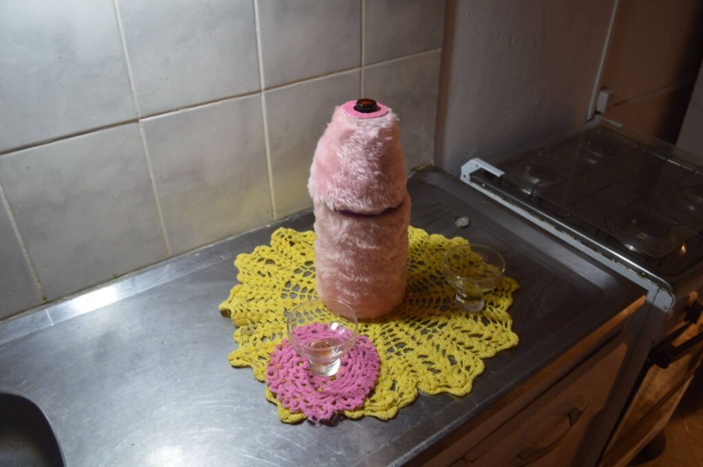 Las obras de Santiago Krause y Jimena Bueno reinventan una realidad más saturada de acciones y colores, convirtiendo a los objetos cotidianos (y en el caso de Santiago también a su propio cuerpo) en una ofrenda gozosa y ornamental. Reivindicando y celebrando aquello que no cumple una función utilitaria y concibiendo a la decoración como un ritual maravilloso donde los materiales comunes y corrientes han atravesado una fiesta pagana y todavía conservan los vestigios de la misma.